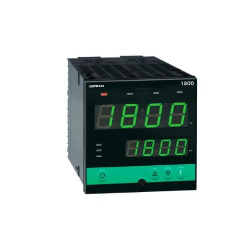 Controlador Gefran modelo 1800-DRRR-V0-11-2-1, de 96 x 96mm, entrada configurable, display doble de 4 dígitos, tecla automático/manual, control PID con autosintonía, salida analógica 0-10 V, tres salidas relé, una salida lógica, dos entradas lógicas, entrada set point remoto 0...10V comunicaciones serie RS232 / RS485, alimentación 100 a 240 Vca y demás características según hojas técnicas adjuntas