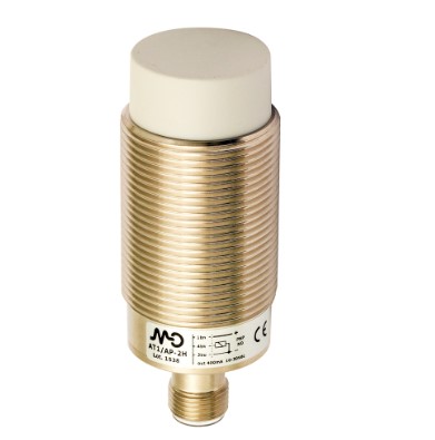 Sensor inductivo marca MD MICRODETECTORS SpA Mod. AT1-AP-4H, diámetro 30 mm., PNP-NA, no rasante, distancia de sensado 20 mm. (rango extendido), salida conector M12 y demás características según hojas técnicas adjuntas