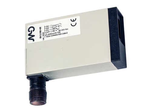 Sensor fotoelectrico de proximidad marca MD MICRODETECTORS SpA modelo BV4-00-0C, distancia de detección 20 cm, regulable, salida TRIAC-NA/NC, alimentación de alterna de 20/240 vca, salida triac, y demás características según hojas técnicas;