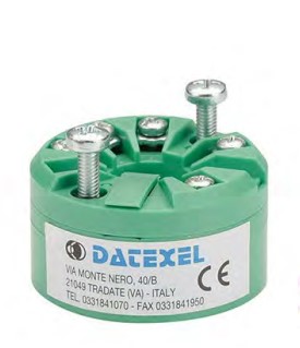 Acondicionador de señal Datexel modelo DAT1065-IS, para montaje en cabezal DINB, entrada configurable, salida 4-20 mA dos hilos, aislado galvánicamente, intrinsecamente seguro, y demás características según hojas técnicas adjuntas