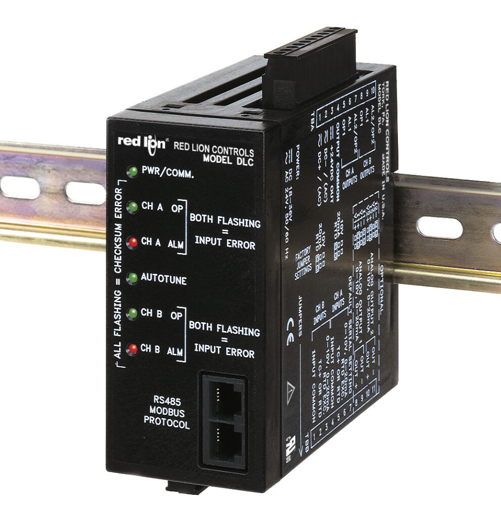 Controlador doble marca RED LION Mod. DLC01001 (ex DLC01000), para montar sobre riel DIN, entradas configurables, salida analógicas