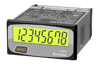 Contador autoalimentado marca AUTONICS CORP. modelo LA8N-BN-L, display de LCD de 8 digitos con backlight, sólo ascendente, entrada de cuenta NPN, tamaño 48 x 24 mm, autoalimentado con bateria de litio duración de aprox. 7 años y demás características según hojas técnicas adjuntas (batería reemplazable CR2477)
