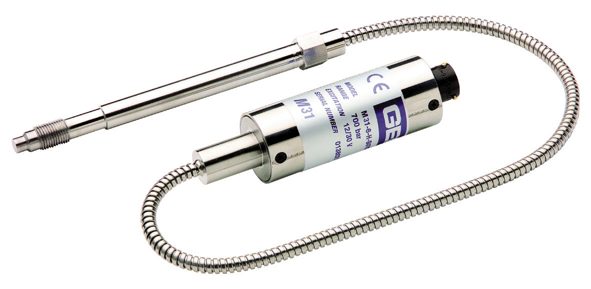 Transductor de presión para alta temperatura marca Gefran modelo M31-6-M-P05M-1-4-K-000, rango 5000 psi, alimentación 6-12 Vcc, salida 3,33 mV/V, precisión 0,5%, longitud del flexible 60" y demás características según hojas técnicas adjuntas
