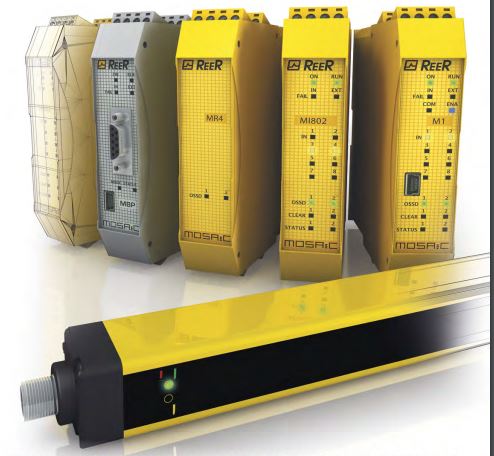 Barrera optoelectrónica marca REER SPA serie METRON modelo ME 1052 tipo A Modelos para la medición de objetos o falta de ellos, medición de las dimensiones o posición, resolución 25mm, 42 haces, altura de sensado 1025mm, distancia hasta 6mts, alimentación 24 Vcc, salida 4 relés de estádo sólido programables, Con CD-Rom conteniendo el software y el manual de instrucciones.