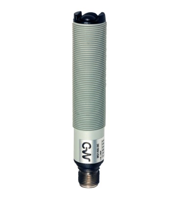 Sensor fotoeléctrico de proximidad con supresión de fondo MD MICRODETECTORS SpA modelo MS1-00-0E, rango 100mm, curpo cilíndrico roscado M18x1 de material plástico, salida Decout (PNP,NPN,NA,NC), alimentación 10 a 30 Vcc y demás características según hojas técnicas adjuntas