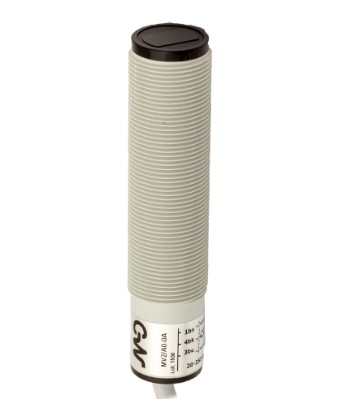 El sensor fotoeléctrico difuso cilíndrico de Datasensing (modelo MV2-A0-0A) es una solución funcional para la detección de objetos. Con un alcance de 100 mm, su salida es NA (triac). Se conecta a través de un cable y utiliza reflexión directa.
