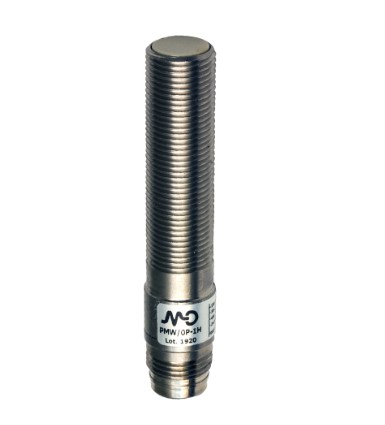 Sensor inductivo MD MICRODETECTORS SpA Mod. PMW-0P-1H, cuerpo en acero inoxidable diámetro 12mm, salida PNP NA/NC, enrasado, distancia de sensado 2 mm., salida conector M12, alimentación 10-30 Vcc y demás características según hojas técnicas adjuntas