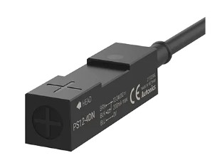 Sensor de proximidad inductivo Autonics modelo PS12-4DN, cuerpo plástico rectangular de 45x12x12mm, alcance nominal 4mm, salida NPN normal abierto con cable, alimentación 12 a 24 Vcc y demás características según hojas técnicas adjuntas
