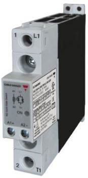 Rele de estado solido Carlo Gavazzi modelo RGH1A60A60KGE, disparo en cruce por cero, tensión nominal 600 VCA, de 60 Amperes, tensión de control de 20.....275 VCA, con disipador integrado y demás características según hoja técnica adjunta.