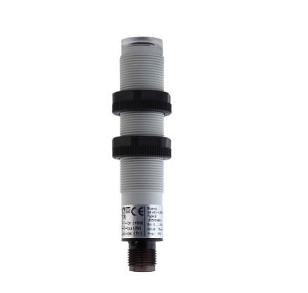 Emisor fotoelectrico por oposición para seguridad Marca MD MICRODETECTORS SpA Mod. SH2-E-0E, diámetro 18 mm., alcance 10 mts., carcaza plástica gris, salida a conector M12, conectable a la unidad de control SBCR02, protección IEC IP67 y demás detalles según hojas técnicas aduntas.