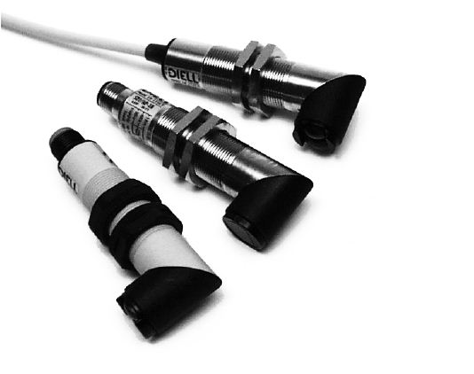 Sensor infrarrojo marca MD MICRODETECTORS Mod. SP2-LP-0E, diámetro 18 mm., óptica a 90º, distancia de sensado 100 mm., sin ajuste de sensibilidad, PNP-NA, alimentación 10/30 VCC, cuerpo plástico, salida a cable.