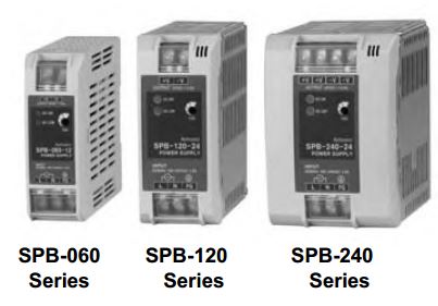Fuente de alimentación switching de Autonics (modelo SPB-060-24), una solución robusta. Entrada de 220 VCA, salida de 24 VCC / 2.5 A (60 W) y montaje sobre riel DIN.