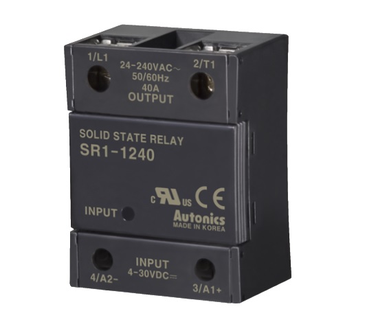 Relé de estado sólido monofásico marca AUTONICS modelo SR1 4475-N de conmutación en paso por cero, de 75 Amperes, tensión de carga de 48 a 480 VCA., tensión de control de 4 a 30 Vdc y demás características según hojas técnicas adjuntas. (No incluye disipador) cruce por cero.