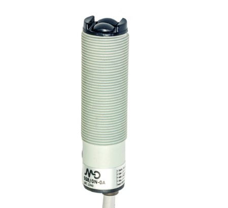 Barrera fotoeléctrica MD MICRODETECTORS SpA Mod. SSC-0P-0A, de cuerpo cilíndrico plástico roscado M18, alcance 4 m, salida PNP NA/NC seleccionable, alimentación 10-30 Vcc, salida cable y demás características según hojas técnicas adjuntas