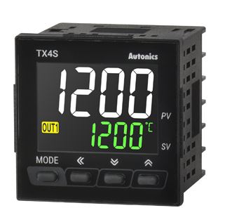 Controlador de temperatura de Autonics (modelo TX4S-B4R), una solución avanzada. Con un cuerpo de 48×48 mm y 4 dígitos, su entrada es configurable (termocuplas, RTD). Tiene control PID con autosintonía, una salida de control a relé, dos salidas de alarma y comunicación RS485. Se alimenta con 100-240 VCA.
